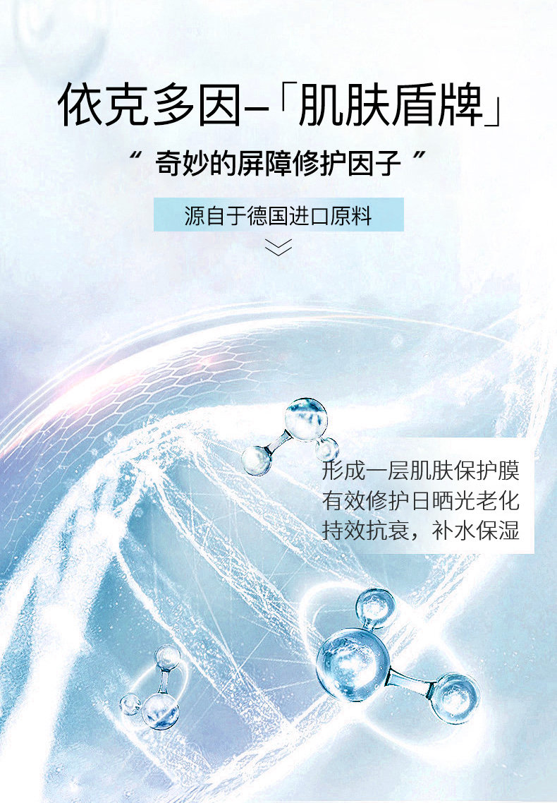 依克多因可以簡單有效地防止外界因素對細胞的破壞,如紫外線輻射、污染物、過敏原,以及冷熱交替、干燥、或化學刺激,提高皮膚免疫力。同時能保護皮膚免受細胞老化的影響,成為對抗皮膚老化的重要活性成分。