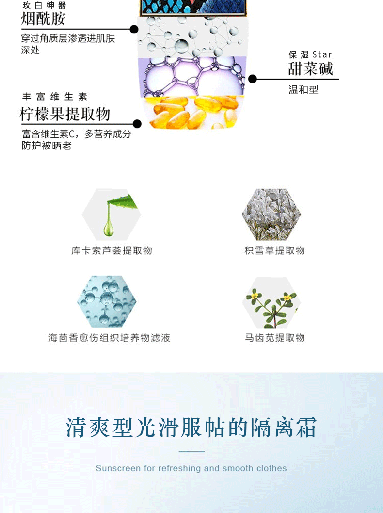 【產(chǎn)品成分】:煙酰胺,甜菜堿,檸檬果提取物