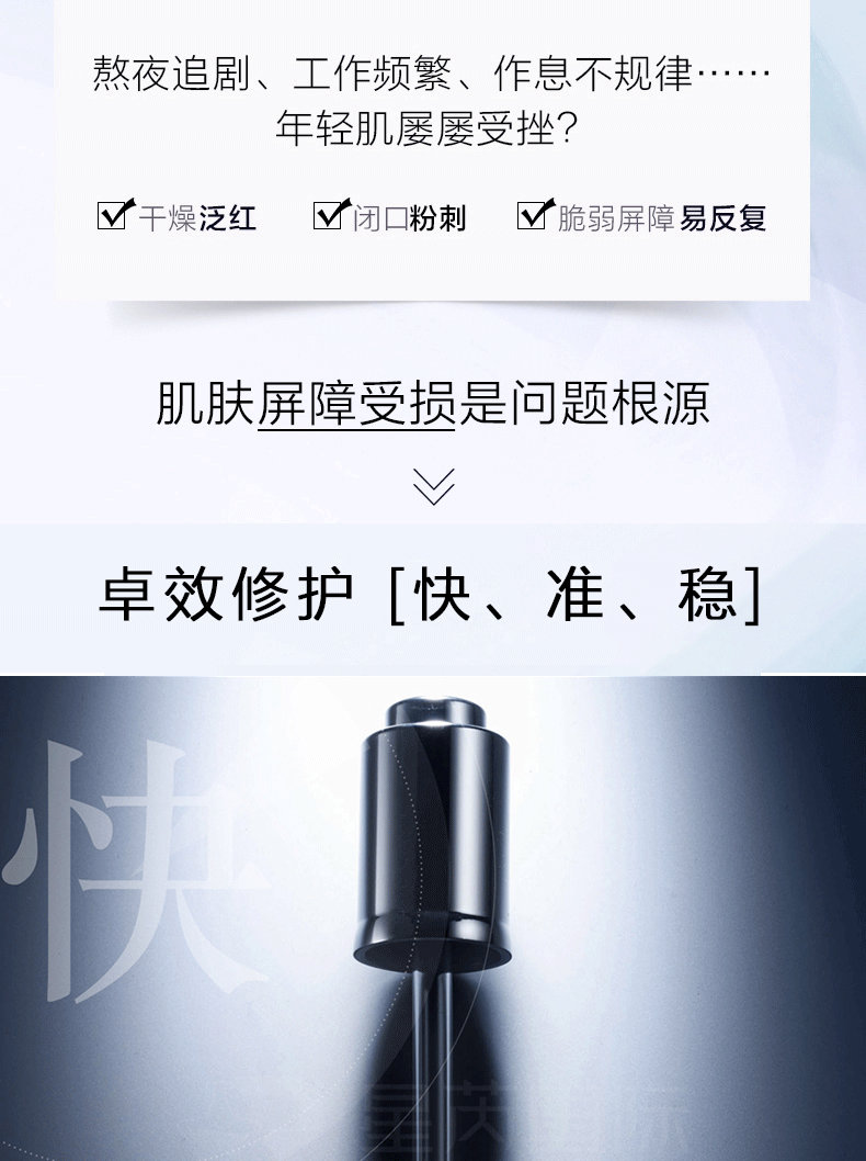 【產(chǎn)品功效】:補(bǔ)水保濕,修復(fù)祛痘,提亮膚色,抗炎