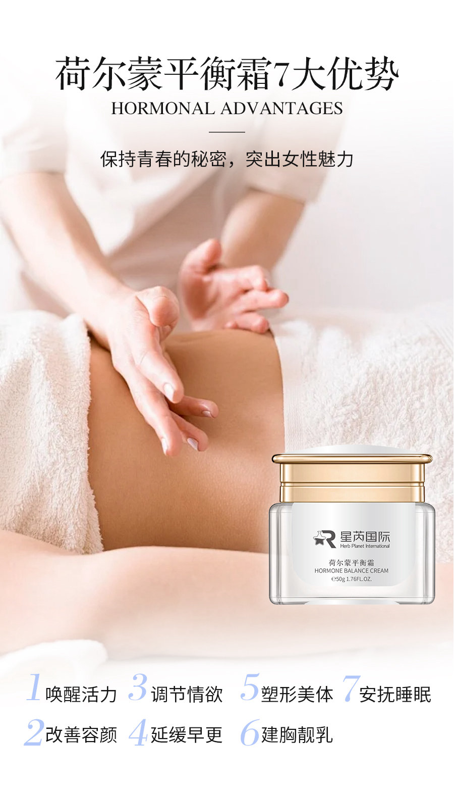 • 荻葦草荷爾蒙平衡霜舒展經(jīng)絡(luò)提升睡眠緊致身體按摩霜OEM代加工
