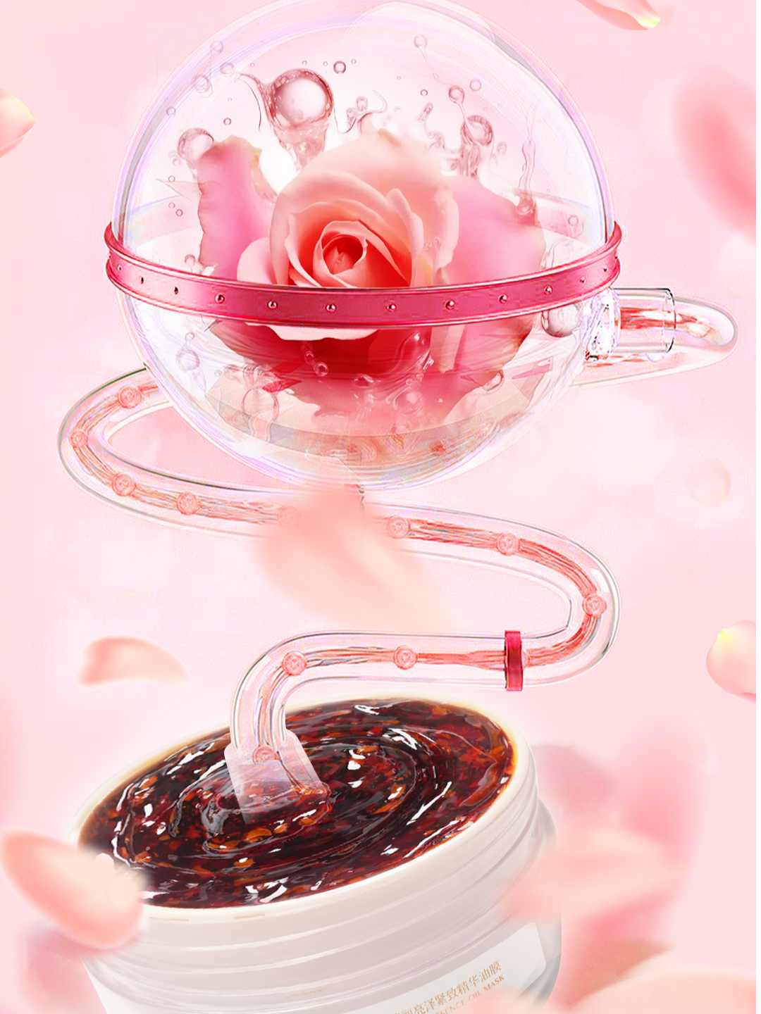 • 玫瑰亮澤緊致精華面膜補(bǔ)水修復(fù)改善暗沉去黃提亮膚色
