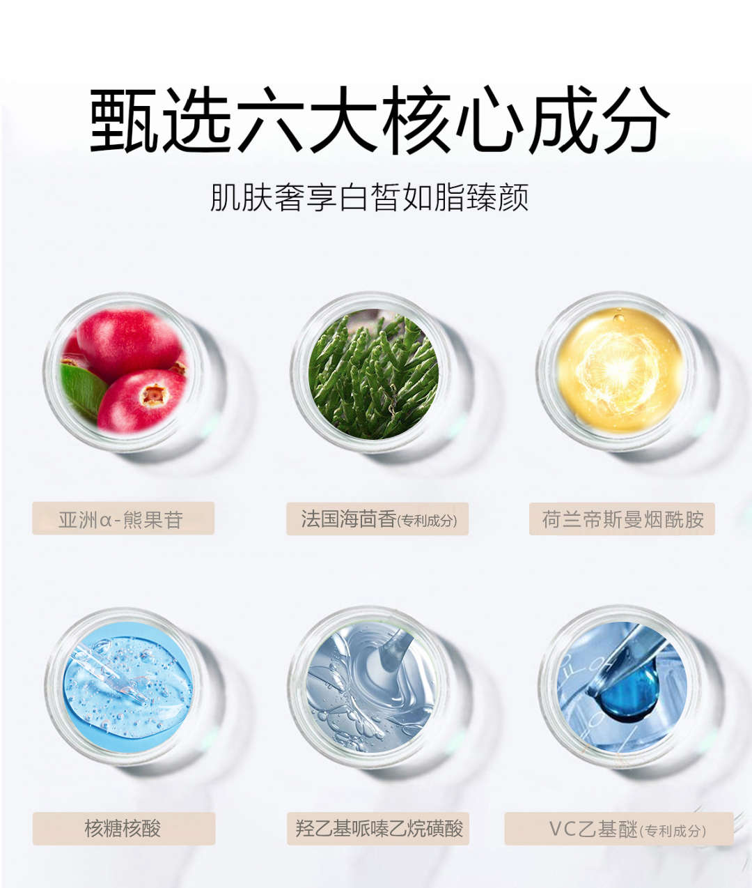 精研配比:1%煙酰胺+0.5%VC乙基醚+0.5%α-熊果苷,三重美白祛斑精粹