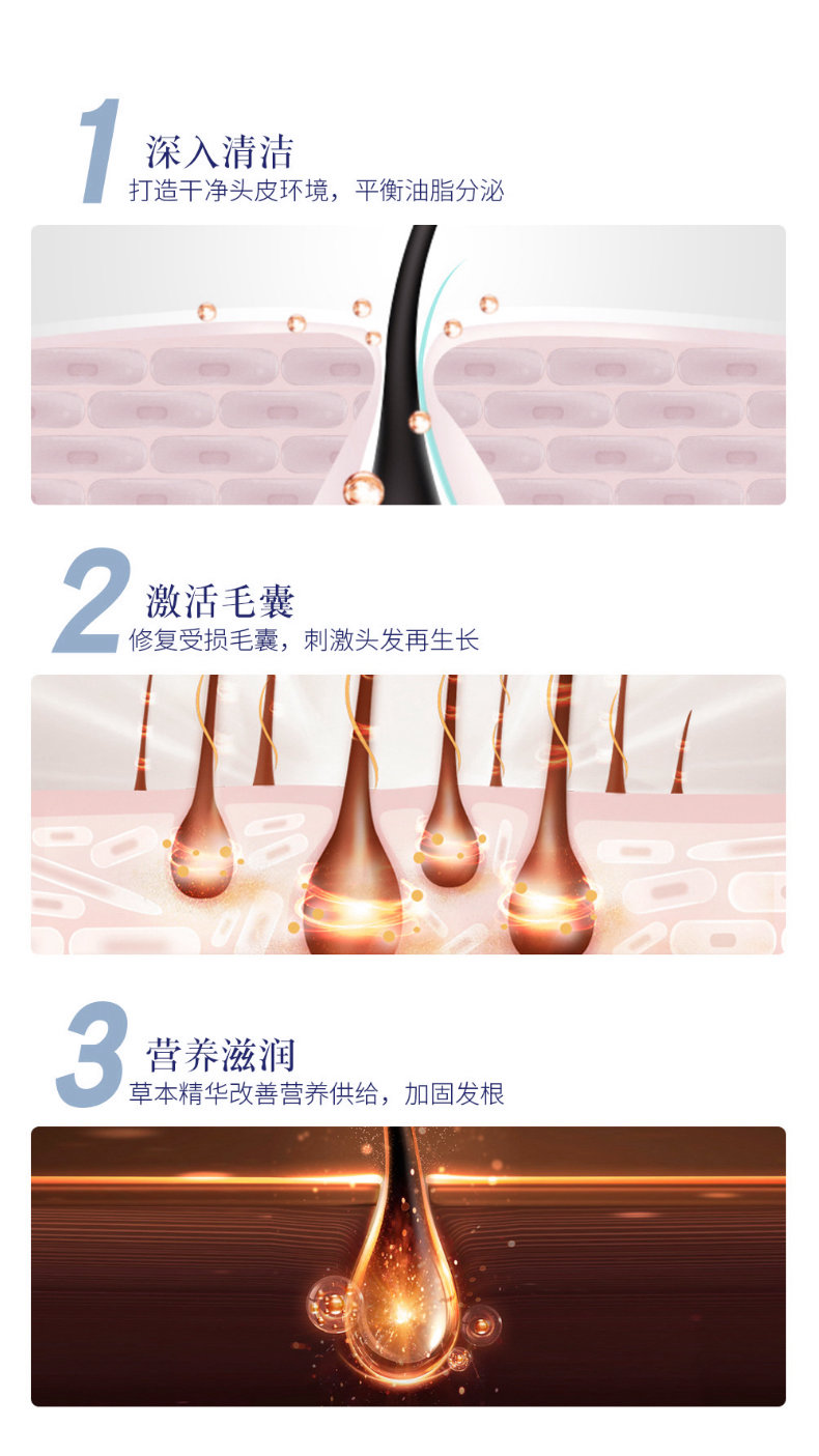 甘草根提取物和苦參提取物分別具有解毒、消炎、祛濕熱、抗菌抑菌等作用,主要針對脂溢性脫發(fā)。姜根提取物則能促進頭皮微血管血液循環(huán),鞏固發(fā)根、活化毛囊組織。