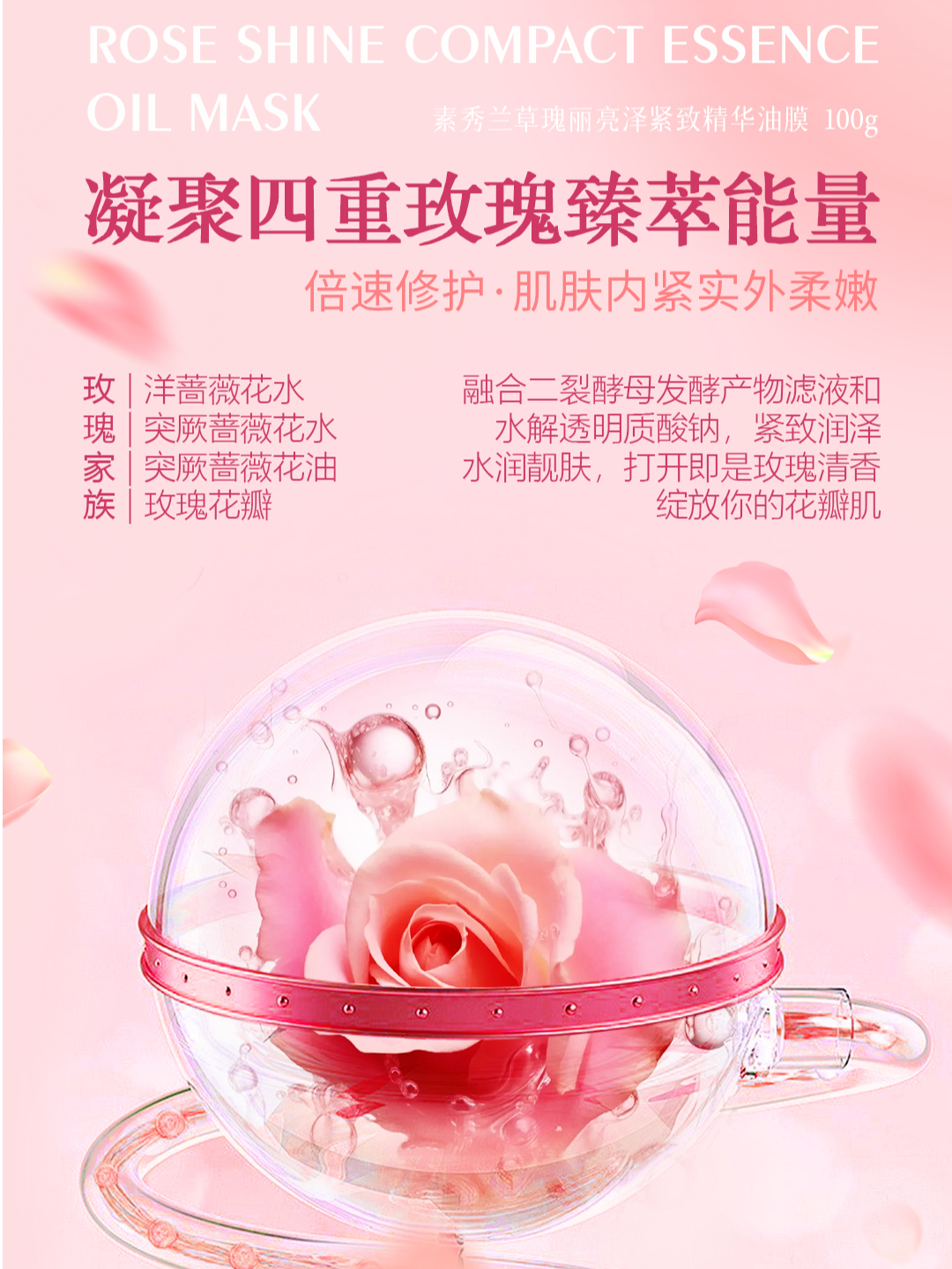 • 玫瑰亮澤緊致精華面膜補(bǔ)水修復(fù)改善暗沉去黃提亮膚色