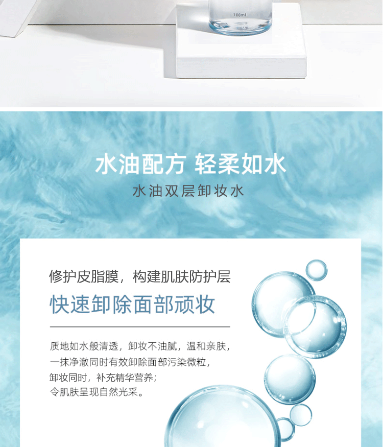 首頁(yè) > 潔面卸妝系列 > 卸妝潔顏雙效合一水油雙層卸妝水化妝品OEM代工貼牌