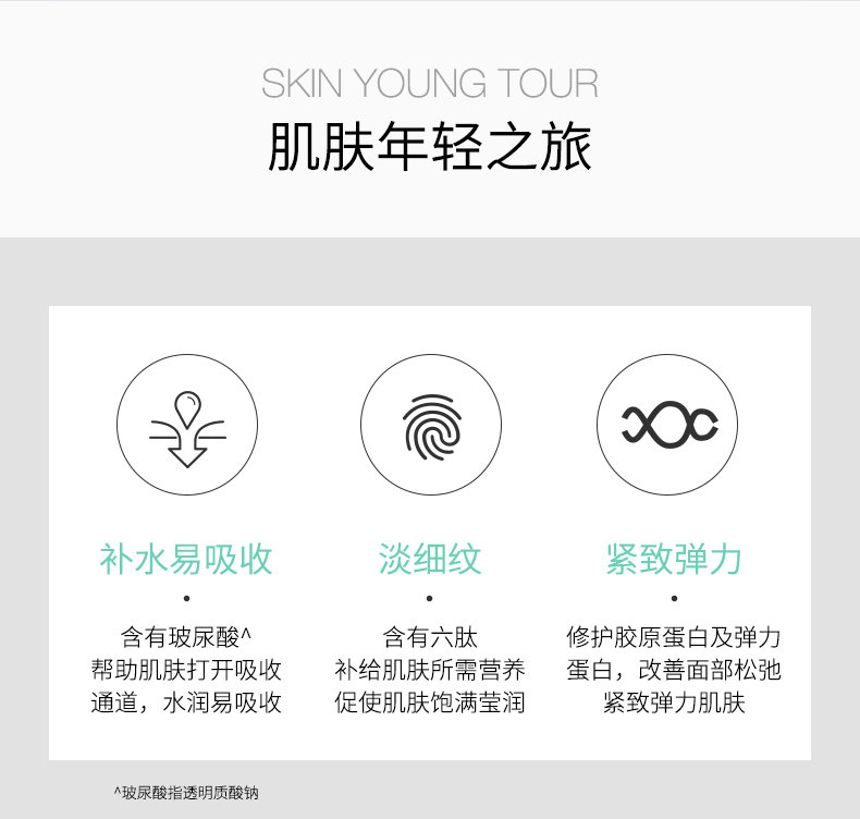 ?嚴選美國高蓄能珍稀地鹽土地植物海茴香干細胞,法國低分子透明質酸硅烷醇,28天顯著提升光澤度49%,皺紋減少39%,彈性提升41%。