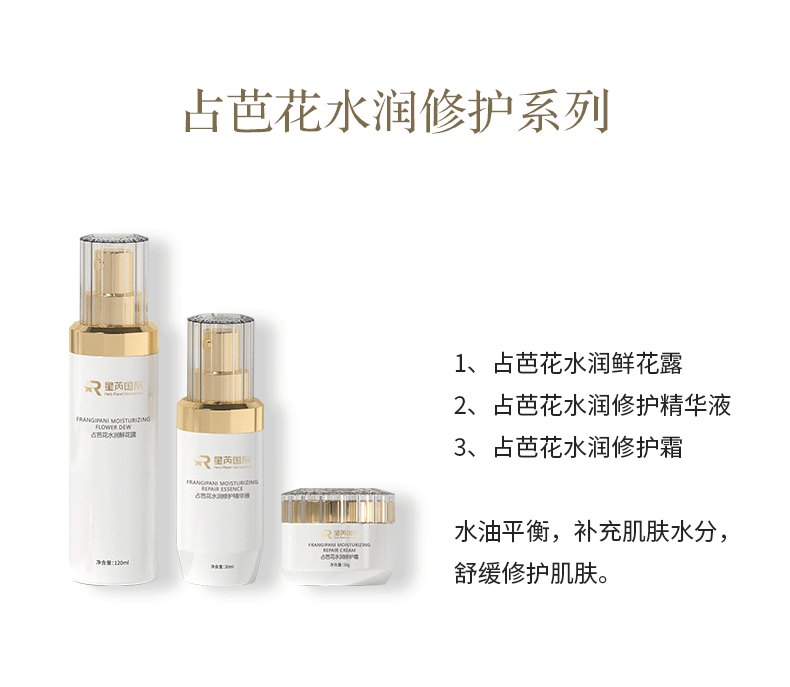 首頁 > 水乳純露系列 > 占芭花肌修護套盒OEM 護膚品代加工